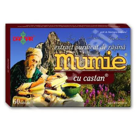 Extract purificat de rasina Mumie (extrasa din Podisul Pamir), extract din fructe de Castan salbatic (Aesculus hippocastanum).