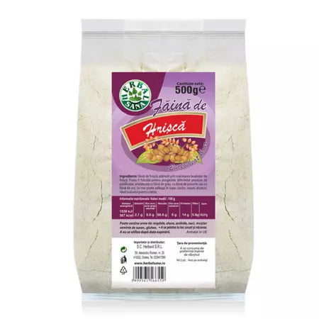 Faina de hrisca, 500 g, Herbal Sana Descriere: Făina de hrișcă este obținută prin măcinarea boabelor de hrișcă. Are un gust ușor de nucă și o textură fină, fiind o alternativă excelentă la făina clasică, potrivită pentru diverse preparate culinare. Proprietăți:...