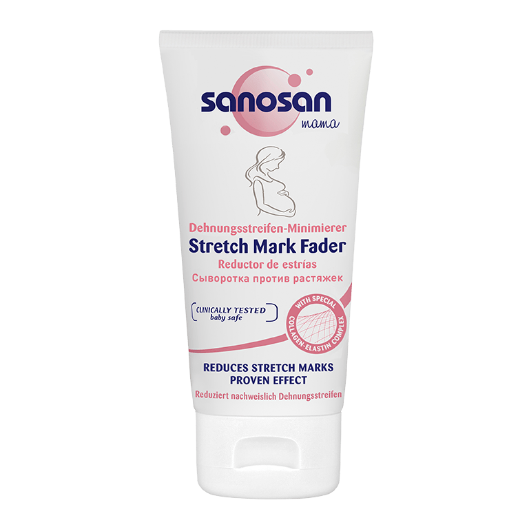 Produs de top pentru perioada de dupa sarcina. Cu formula SynMatTM, sanosan Stretch Mark Fader a demonstrat ca reduce adancimea medie a vergeturilor cu 72% dupa 2 luni de utilizare*. Vergeturile se estompeaza (culoare -21%), devin mai netede (rugozitate -21%) si latimea lor scade (-26%). SynMatTM este o combinatie intre un extract de phaseolus lunatus (extract de fasole lima), rutina (pentru a contracara celulele activate ale sistemului imunitar) si doua peptide (pentru a favoriza repararea matricei extracelulare deteriorate).