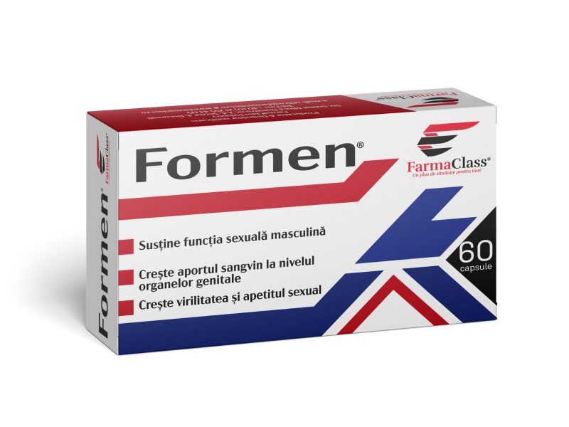 Formen este o formula special creata pentru imbunatatirea performantelor sexuale masculine si a virilitatii. Contine specii de plante si aminoacizi ce imbunatatesc functia erectila si libidoul, prin cresterea duratei si calitatii erectiei. Formen creste fluxul sangvin la nivelul organelor genitale masculine, sustinand astfel functionarea optima a organelor genitale si potenta. Mentine sanatatea sistemului reproductiv masculin. Sustine sistemul muscular prin crestere aportului energetic.