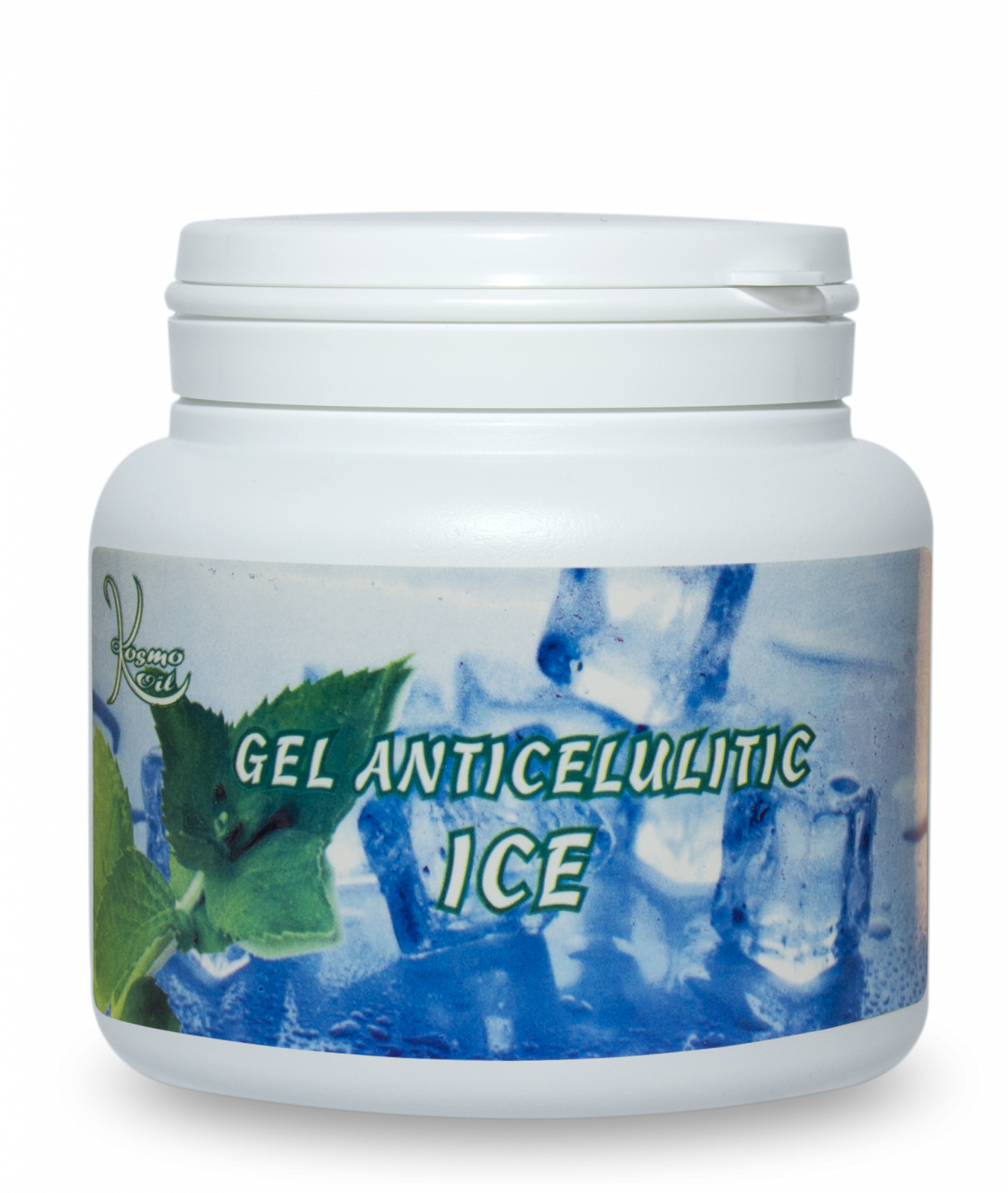 Gelul anticelulitic ICE marca Kosmo Oil este un gel cu efect termic de racire, utilizat pentru impachetare la rece, ideal pentru pielea sensibila sau cu vase capilare dilatate. Pe langa faptul ca are o textura usoara de gel, acest gel topeste celulita, actioneaza in profunzime impotriva acumularii de celulita, regenereaza celulele si activeaza circulatia periferica. Gelul Anticelulitic ICE contribuie la slabire, la detoxifiere, la eliminarea celulitei, oferind pielii un plus de hidratare si elasticitate. Se utilizeaza pentru combaterea celulitei si pentru tratamente de remodelare corporala. Actioneaza eficient asupra tesutului adipos in sensul reducerii volumului. Gelul anticelulitic contine camfor si mentol care reduc temperatura locala. Are efecte anticelulitice si de slabire.