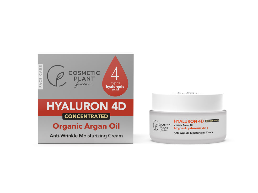 Avand la baza un complex de acid hialuronic 4D, obtinut prin combinarea a 4 tipuri de acid hialuronic cu mase moleculare diferite, crema ofera beneficii multiple, printre care efect antirid asigurat de acidul hialuronic cu molecula mica si efect de hidratare datorat moleculelor mari de acid hialuronic. Efectul antirid este imbunatatit de prezenta uleiului de argan organic. Pudra de orez organica ofera un efect de matifiere usoara, crema fiind potrivita unui ten normal/mixt.