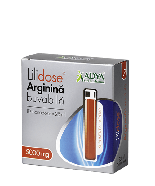 LiliDose Arginina buvabila este un produs marca Adya Green Pharma din categoria suplimentelor alimentare care contine aminoacidul arginina sub forma usor asimilabila de aspartat. Produsul poate fi regasit in 3 forme – arginina de 1000 mg, 2000 mg, iar cealalta, unica pe piata din Romania, cu 5000 mg, ambele avand calitate de grad farmaceutic.