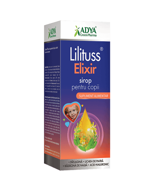 LiliTUSS Elixir sirop pentru copii este un supliment alimentar destinat copiilor. Asocierea perfecta a extractelor din plante, atent selectionate, confera acestui sirop actiunea unui balsam cu rol emolient si protector al cailor respiratorii, la aceasta contribuind si prezenta acidului hialuronic, un glicozaminoglican – polizaharid complex intalnit in materialul intercelular si in membranele bazale ale tesuturilor epiteliale, in tesuturile conjunctiv, epitelial si nervos.