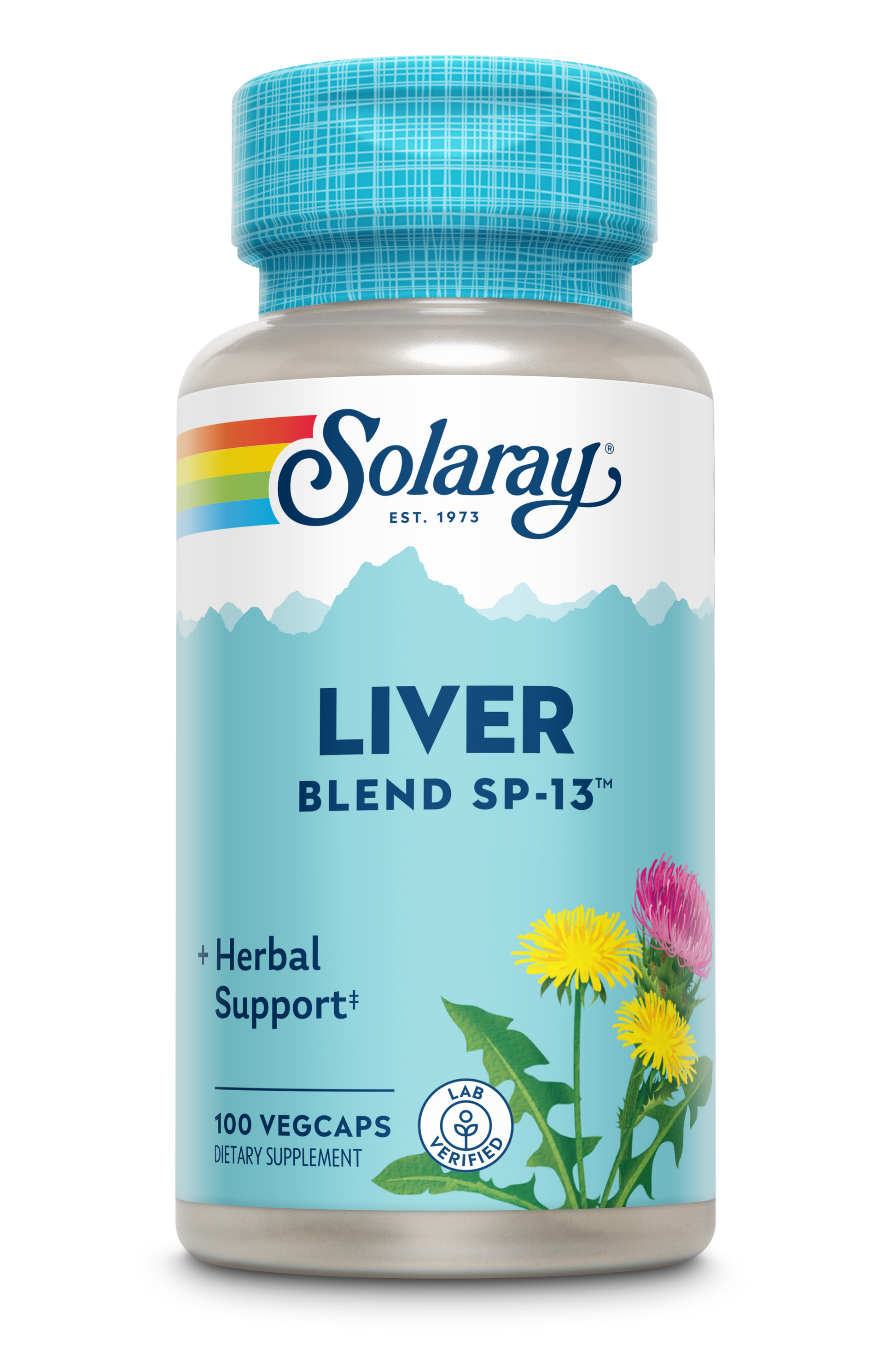 flacon cu 100 capsule vegetale Supliment alimentar Liver Blend™, Solaray, 100 capsule vegetale pe baza de amestec patentat din plante cu rol in buna functionare a ficatului