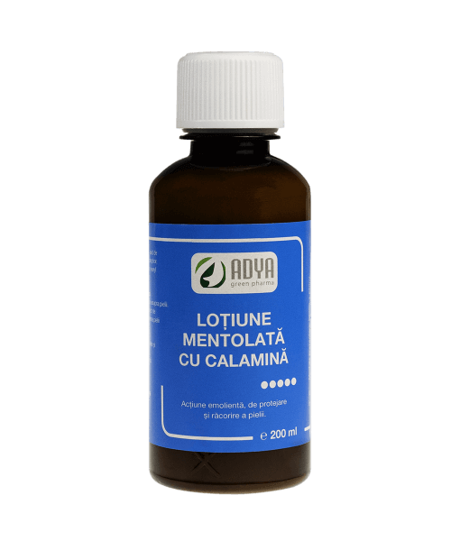 Lotiunea mentolata cu calamina Adya Green Pharma este o solutie de uz extern cu efect de racorire asupra pielii datorita mentolului si camforului din compozitie , dar si protector asupra epidermei prin continutul de zinc, fiind utilizat cu succes pentru reducerea pruritului post intepaturi de insecte , dar si dupa expunerea la soare.