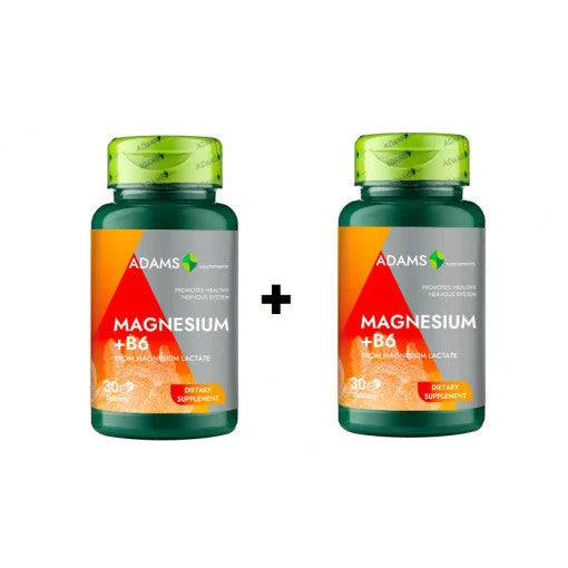 Pachetul Magneziu + B6 de la Adams Supplements este un supliment alimentar conceput pentru a sprijini functionarea optima a sistemului nervos si muscular. Combinatia de magneziu si vitamina B6 contribuie la reducerea oboselii si extenuarii, sustinand in acelasi timp metabolismul energetic si sanatatea psihica.