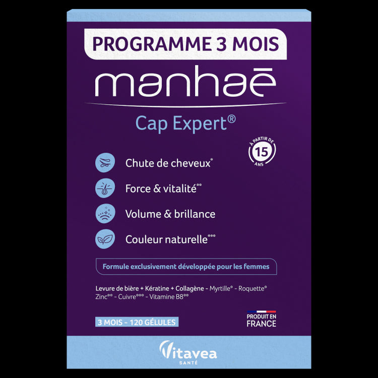 Pentru o eficienta optima utilizati Manhaé Cap Expert® pe o perioada de 3 luni consecutive.