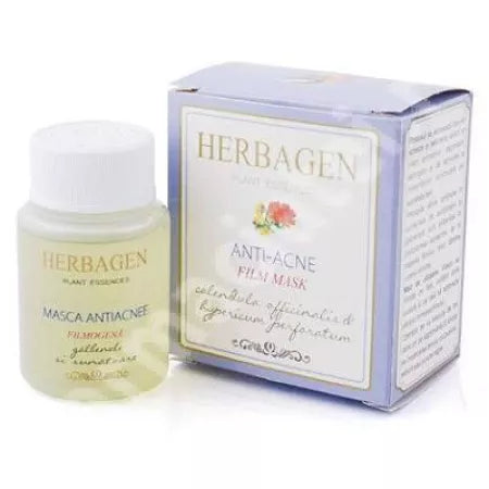 Mască antiacnee filmogenă HERBAGEN cu extract de gălbenele și sunătoare se adresează tenurilor acneice și seboreice având un efect antiseptic, degresant, astringent și de eliminare a impurităților acumulate pe suprafața pielii. Principiile active conținute în extractele de sunătoare și gălbenele sunt eliberate în profunzimea epidermei, iar la tragerea filmului, tenul rămâne curat și luminos.