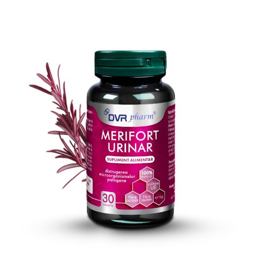 MERIFORT URINAR, cu merisor, cuisoare, ienupar si dafin ar putea interactiona cu microorganismele patogene1de la nivelul tractului urinar2. Iar cu ajutorul brusturelui, urzicii si a ienuparului, care sustin diureza si functionarea optima a rinichilor, MERIFORT URINAR contribuie la eliminarea prompta a agentilor infectiosi. in plus, brusturele, ienuparul si merisorul au fost cercetate pentru actiunea lor asupra inflamatiei3ce declanseaza durerea locala.