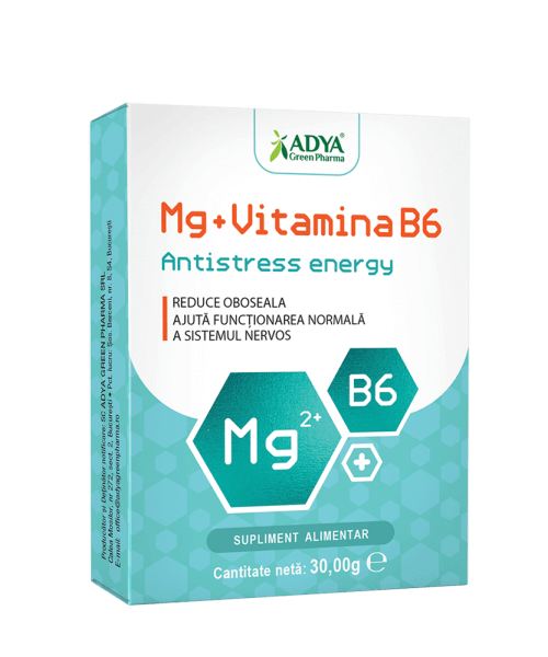 Magneziul asociat cu vitamina B6 contribuie la reducerea oboselii si extenuarii, la functionarea normala a sistemului nervos, la mentinerea sanatatii psihice, la echilibrul electrolitic, in functionarea normala a sistemului nervos; ajuta in procesul de diviziune celulara si la mentinerea metabolismului energetic normal.