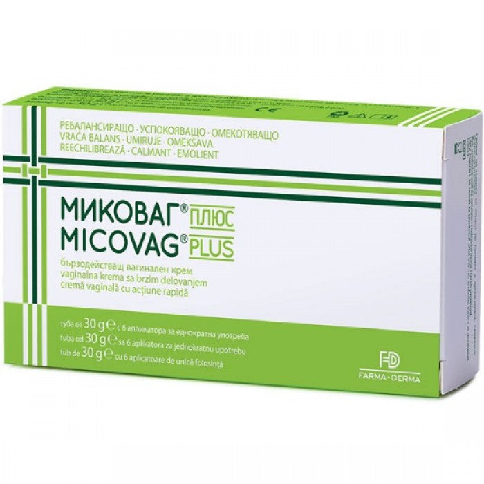Micovag Plus crema, prin compozitia sa, stimuleaza dezvoltarea lactobacililor in mediul vaginal, echilibrand si normalizand pH-ul vaginal, oferind astfel un mediu nefavorabil pentru colonizarea microorganismelor patogene. Datorita efectului sau emolient si calmant, crema poate ameliora rapid senzatia de mancarime (prurit) si arsura, simptome ale infecţiei vaginale fungice.