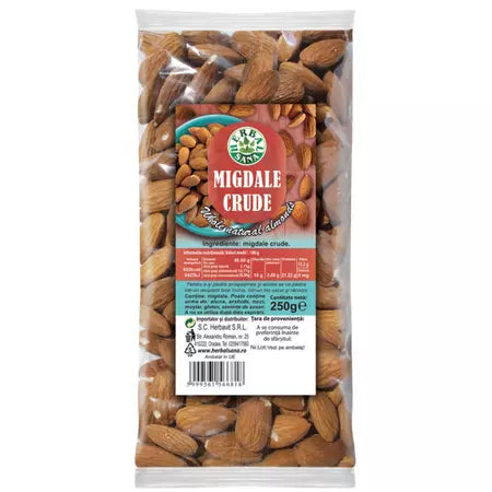Migdale crude, 250 g, Herbal Sana Descriere: Migdalele crude sunt nuci delicioase, bogate în nutrienți esențiali, oferind o gustare hrănitoare și sănătoasă. Proprietăți: Sursă excelentă de grăsimi sănătoase (acizi grași mononesaturați și polinesaturați). Contribuie la sănătatea inimii, ajutând la reducerea colesterolului „rău”...