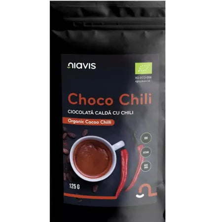 Choco Chili Mix Ecologic/Bio de la Niavis este o bautura inovatoare si surprinzatoare care combina aroma intensa a ciocolatei cu caldura picanta a chili-ului. Aceasta combinatie unica ofera o experienta senzoriala deosebita, perfecta pentru cei care doresc sa experimenteze un amestec interesant de gusturi si sa se bucure de beneficiile nutritionale ale ingredientelor de inalta calitate