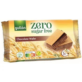 Napolitane fara zahar cu aroma de cacao. Sursa de fibre. Fara grasimi hidrogenate. Fara zaharuri. Ingrediente: Crema cu aroma ciocolata 71% [indulcitori (maltitol, izomalt), grasimi vegetale (palmier si samburi de palmier), pudra de cacao 9%, amidon din GRAU, emulsifiant (lecitina din...