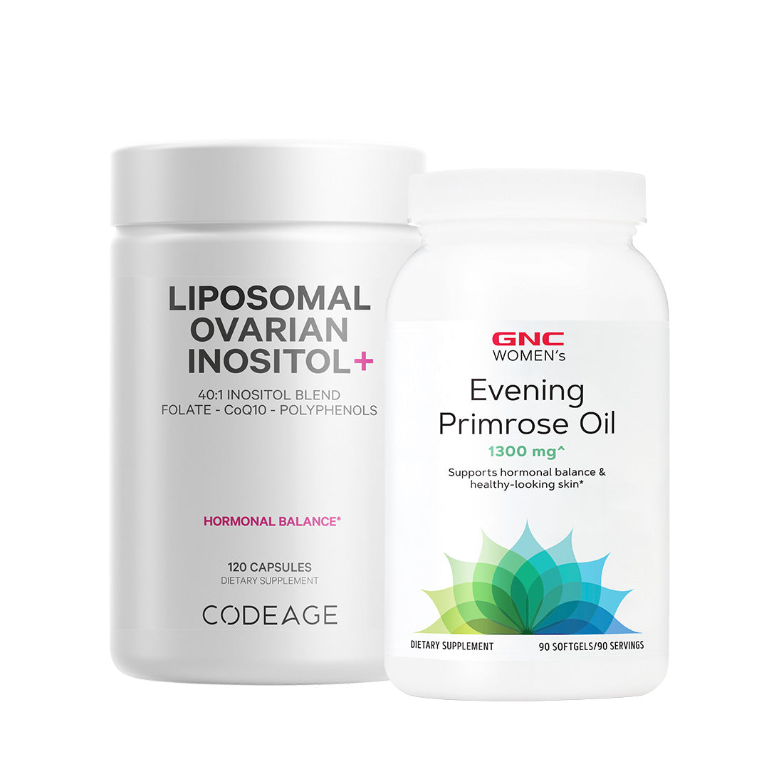 Combina doua suplimente premium, menite sa sprijine echilibrul hormonal, sanatatea ovariana si bunastarea generala.