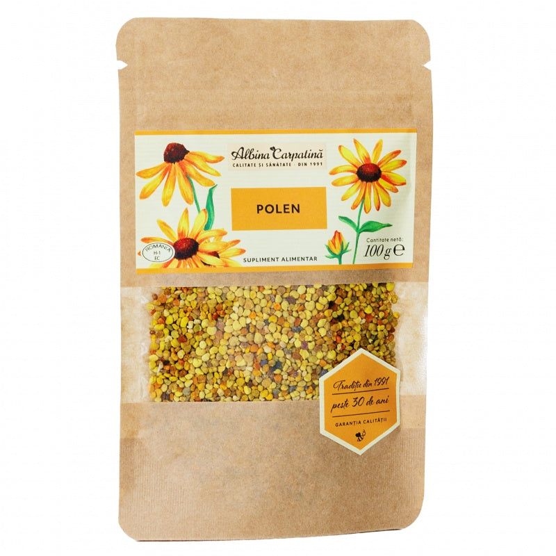 - Energizant natural: Polenul crud este o sursa excelenta de carbohidrati, proteine si grasimi sanatoase, furnizand energie rapida si sustinuta.