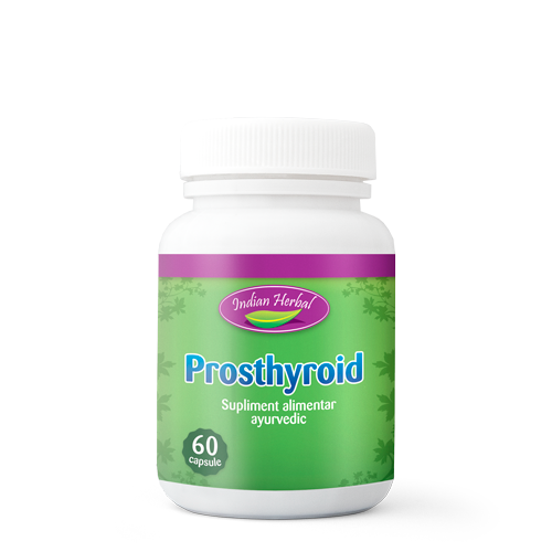 Prosthyroid nu contine hormoni, fiind un produs 100% natural, lipsit de efecte secundare. Plantele din componenta produsului actioneaza asupra tiroidei, in scopul normalizarii secretiei de hormoni proprii si stimularii functiei organismului de asimilare si metabolizare a iodului din alimente.