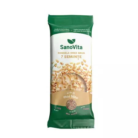 Rondele crocante din orez brun și amestec de semințe nutritive. Produs vegan, bogat în fibre, ideal ca gustare sau alternativă la pâine.