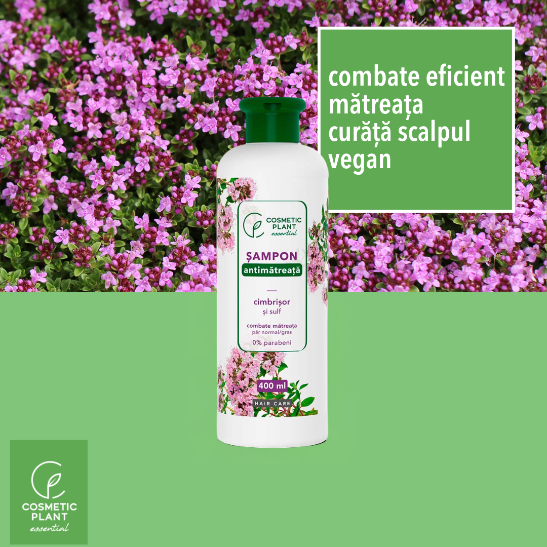 Este singurul sampon care are complexul vegetal cu extract de cimbrisor si urzica, PLUS sulf, aceasta formula dandu-i eficienta superioara in intretinerea unui par fara matreata.