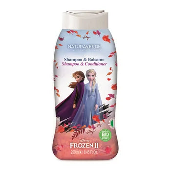 Acest produs este sampon si balsam 2 in 1 si este recomandat pentru fetitele cu orice tip de par. A fost conceput sub licenta, special pentru micii fani Disney Regatul de gheata. Pe ambalajul acestui produs este ilustrata o imagine cu printesele favorite – Elza si Anna. In compozitie, gasim extract organic de albastrele si aroma de mosk alb. Samponul curata delicat parul copilului si il lasa fin ca matasea, usor de pieptanat. Cele mai cautate sampoane pentru copii Disney, sunt cele cu desenul preferat „Frozen”. Produsul este indicat copiilor de la 24 luni.