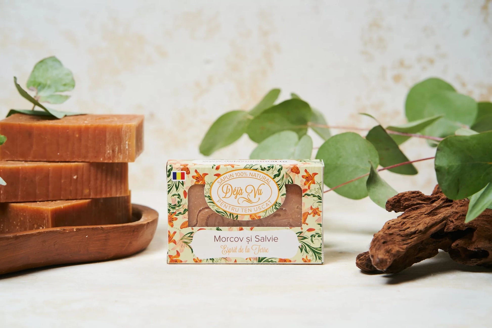 Sapun 100% natural cu salvie si morcov, ideal pentru ten uscat, antioxidant si hidratant.