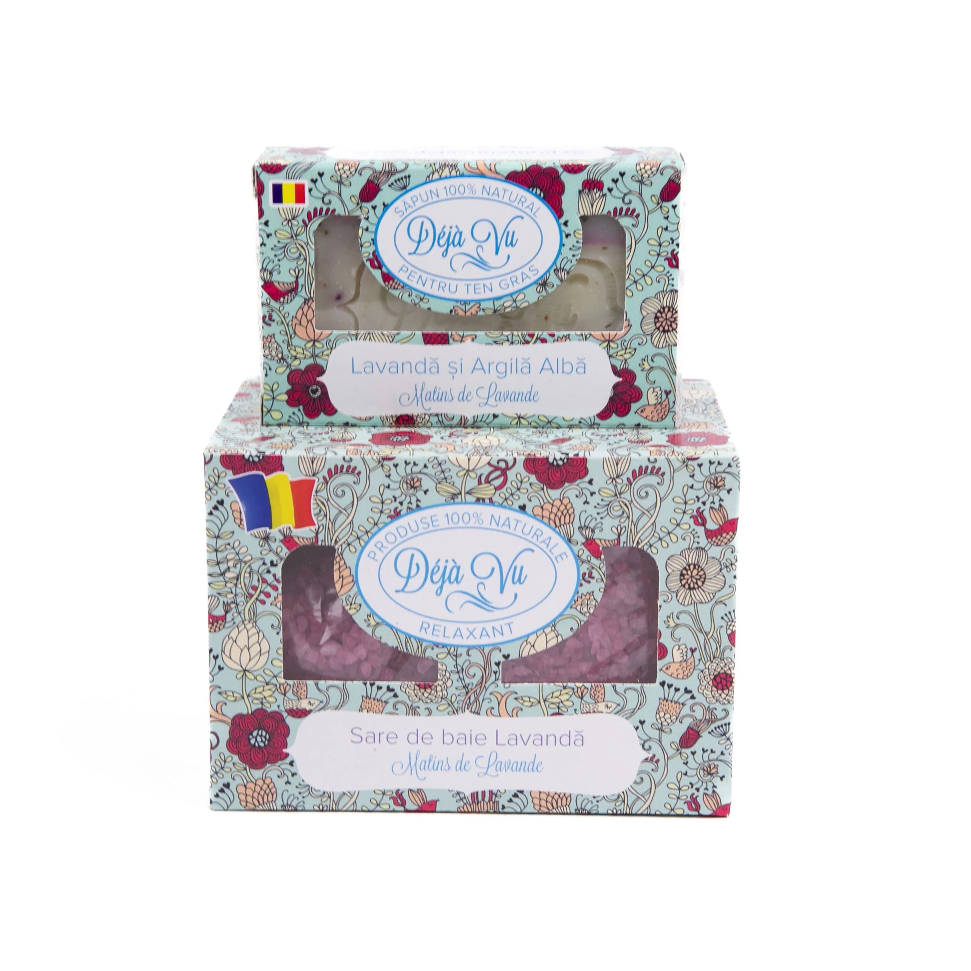 Set Cadou Sare de Baie cu Lavanda si Sapun de Lavanda cu Argila Alba, ”Matins de Lavande” – Ideal pentru Ten Gras