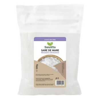 Sarea de mare grunjoasa neiodata este un produs natural obtinut direct din evaporarea apei de mare. Contine 80 de minerale si alti nutrienti necesari organismului uman, care ajuta la regenerarea celulelor. Nu contine antiaglomerant.
