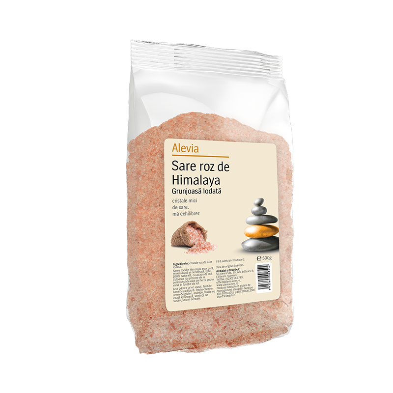 Sare roz de Himalaya Grunjoasa Iodata 100% naturala, cu adaos de iod.