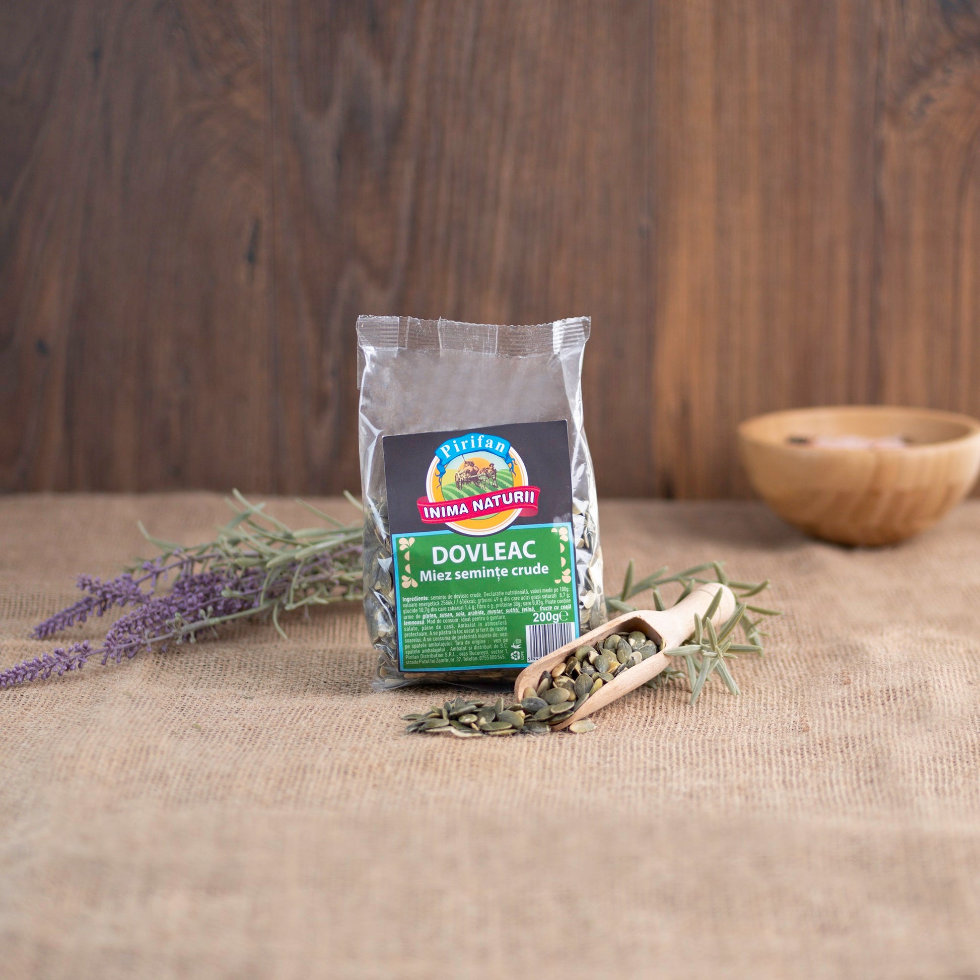 Beneficii: Datorita nutrientilor sai extrem de benefici pentru starea de sanatate, este recomandat consumul zilnic de seminte de dovleac crude, decojite, de la Pirifan. Semintele de dovleac crude, decojite, sunt cunoscute pentru abilitatea lor de a combate stresul si insomniile, sau de a lupta eficient impotriva durerilor de guta.