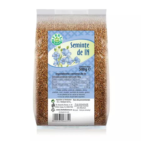 Seminte de in, 500 g, Herbal Sana Descriere: Semințele de in sunt o sursă excelentă de acizi grași Omega-3, fibre și proteine, având multiple beneficii pentru sănătate. Sunt utilizate frecvent în dietele echilibrate și în diverse rețete culinare. Proprietăți: Bogate în...