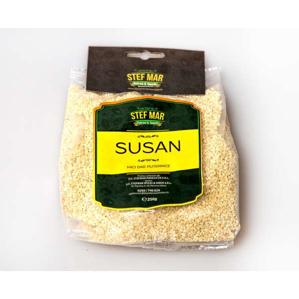 Seminte de susan 250g este produs de firma StefMar si face parte din oferta de produse a magazinului nostru online de produse naturiste - StefMar Store, din sectiunea | Cereale si Seminte | Seminte de susan 250g |