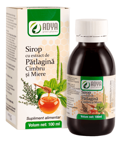 Formula imbogatita cu cimbru de cultura a siropului cu patlagina si miere Adya Green Pharma reprezinta varianta optima pentru calmarea cailor respiratorii, ajutand la fluidificarea secretiilor bronsice si eliminarea lor. in plus, se observa si un efect imunostimulator, toate acestea fiind reunite intr-un produs sigur, cu gust placut , care se adreseaza deopotriva adultilor si copiilor.
