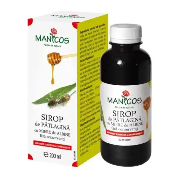 Descriere Siropul de pătlăgină 200 ml de la Manicos este un produs natural destinat susținerii sănătății aparatului respirator. Obținut din extracte concentrate de pătlăgină (Plantago lanceolata) și îndulcit cu fructoză, acest sirop este formulat pentru a ajuta la normalizarea secrețiilor bronșice...