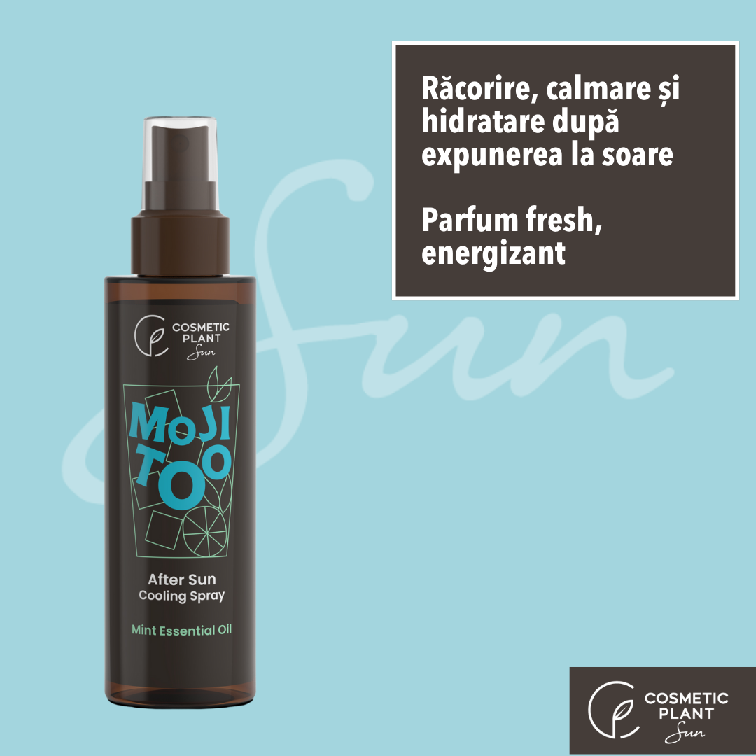 Sun MOJITOO After Sun Cooling Spray asigura o senzatie cool, racoritoare dupa plaja si o hidratare intensa, datorita formulei bogate in ingrediente active: ulei de menta, mentol si vitamina B5. Aplicarea este comoda si rapida - flacon practic, cu spray.