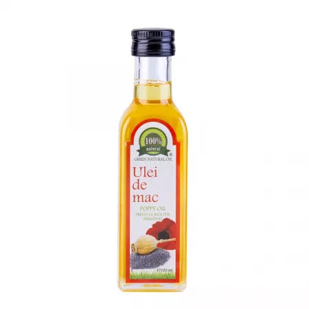 100% ulei pur de mac presat la rece din seminte de mac, netratate termic, atent selectionate, foarte bogat in vitamina E, A, F, fosfolipide, precum si minerale: calciu, magneziu, fier, cupru.