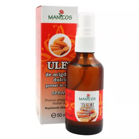 Uleiul de migdale dulci în format spray de 50 ml este ideal pentru îngrijirea pielii datorită compoziției sale bogate în acizi grași nesaturați, similare cu cele ale uleiului de măsline. Aplicarea sub formă de spray facilitează utilizarea directă pe piele, fiind eficient în prevenirea și reducerea ridurilor, cu un accent deosebit pe zona din jurul ochilor. Prin stimularea regenerării celulare și efectul său antiinflamator, uleiul contribuie la cicatrizare și oferă pielii un aspect sănătos și hidratat. Proprietățile dermonutritive și emoliente fac ca produsul să fie un aliat indispensabil în prevenirea vergeturilor, fiind potrivit atât pentru uz extern, cât și intern, datorită acțiunii sale hipocolesterolemiante. Uleiul de migdale dulci este un produs versatil și esențial în rutina de îngrijire personală, oferind beneficii complete pentru sănătatea și frumusețea pielii tale.