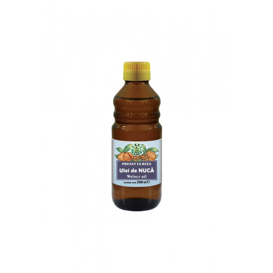 Uleiul de nucă (Juglans Regia) este 100% natural, se obţine din miezul de nucă prin presare la rece.