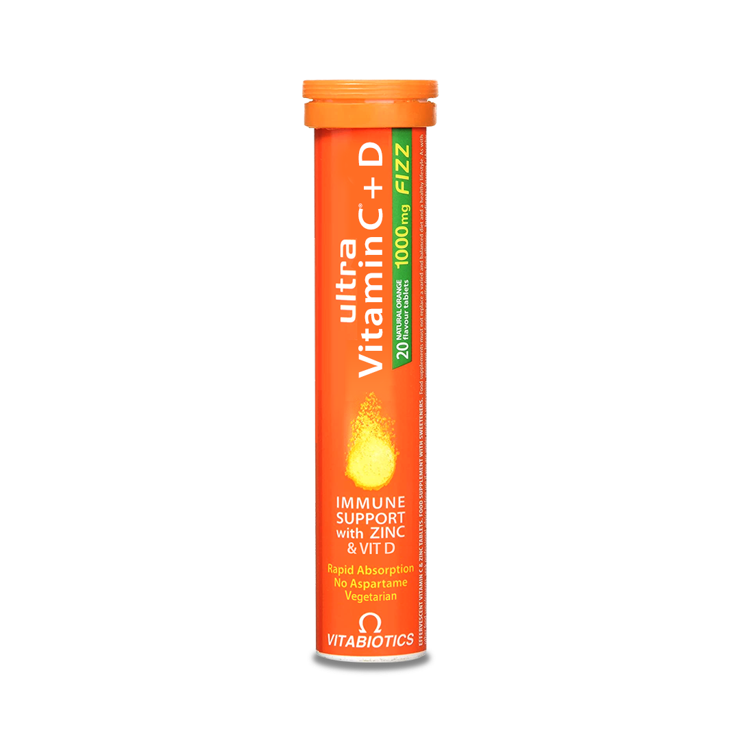 Ultra Vitamina C+D Fizz 1000 UI Tablete Efervescente contine vitamina C si vitamina D intr-o formula echilibrata cu adaos de Zinc pentru sprijinirea imunitatii.