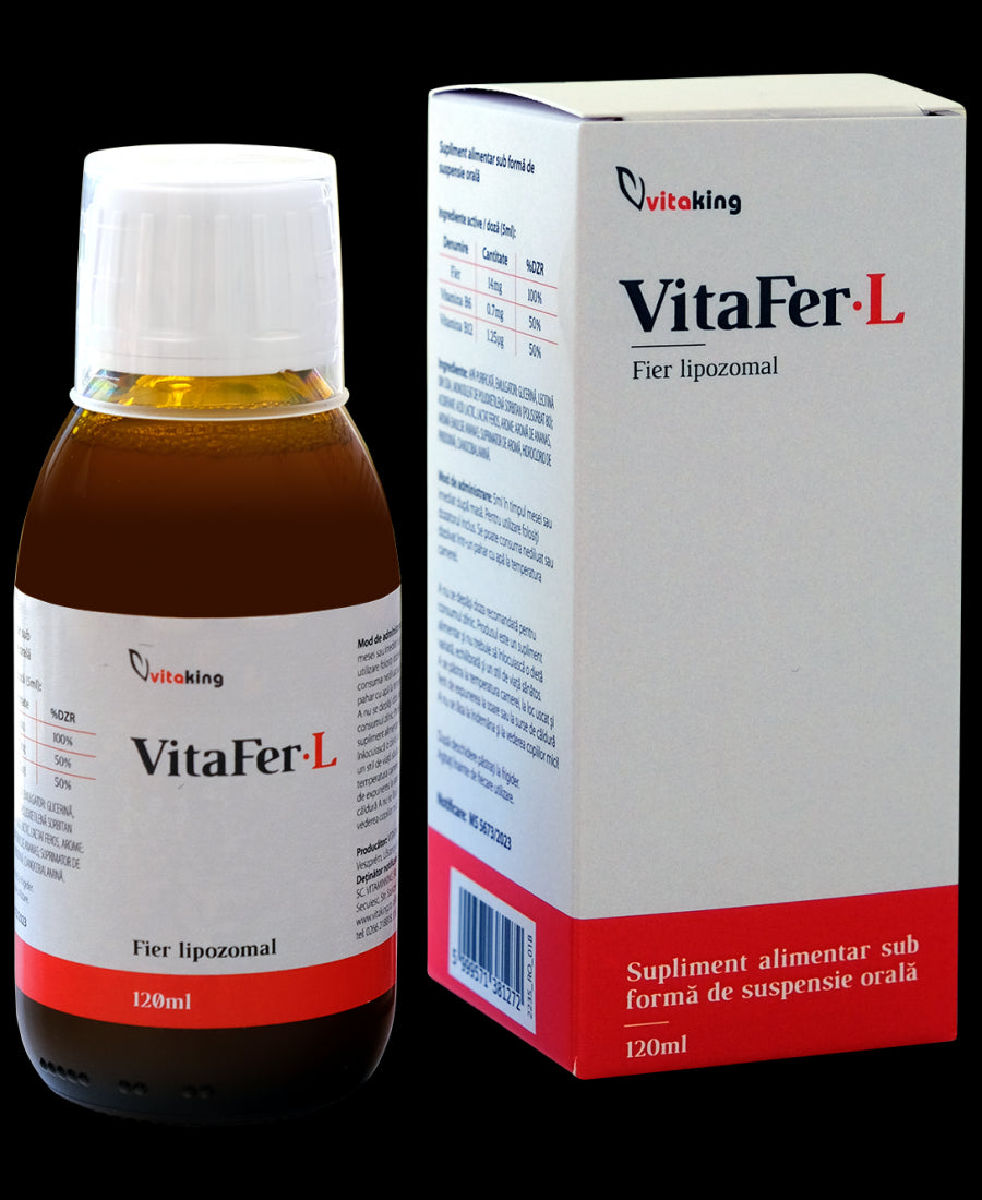 Comparativ cu formele clasice de fier, administrarea fierului lipozomal nu are efecte secundare precum constipatia. Datorita lipozomilor, aceasta formula inovatoare de fier prezinta biodisponibilitate crescuta si absorbtie rapida. Lipozomii asigura trecerea prin sistemul digestiv ajutand ca fierul sa fie absorbit nu doar la nivelul duodenului ci la nivelul intregului intestin subtire.Vitafer-L este perfect pentru a asigura nevoile zilnice de fier nu numai copiilor, ci si adultilor. Pe langa doza zilnica de fier, produsul contine vitamina B12, necesara unei mai bune utilizari a fierului, intr-o cantitate care acopera 50% din cantitatea zilnica recomandata. Siropul contine vitamina B6, care contribuie la formarea normala a globulelor rosii.