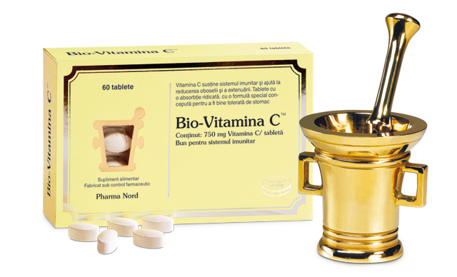 Bio- Vitamina C sunt comprimate filmate cu 750 mg de vitamina C sub forma de ascorbat de calciu cu calitate farmaceutica.