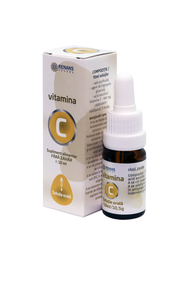 1 ml soluţie conţine aproximativ 32 de picaturi, 1 picatura soluţie conţine aproximativ 3 mg Vitamina C (3,75 %VNR*).