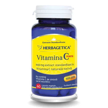 Vitamina C Forte de la Herbagetica livreaza intr-o singura capsula 400mg de extract standardizat in Vitamina C naturala, asigurand 85% din necesarul zilnic de Vitamina C livrat intr-o formula naturala. Comparativ cu alte produse, Vitamina C Forte nu contine elemente de sinteza, indulcitori sau arome.