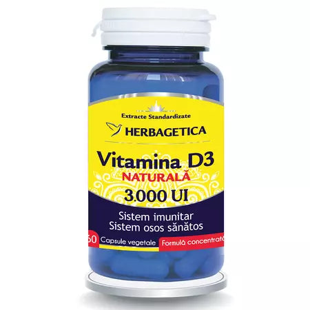 Vitamina D3 naturala 3000 UI, 60 capsule, Herbagetica [6425262011474]